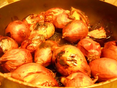 Soğanları bir tepsiye kabuklu halleriyle yerleştirin ve közleyin.