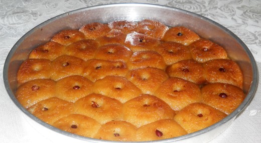 Tatlı pişince şerbet ve tatlı sıcakken şerbeti dökün ve fırına atıp pişirmeye devam edin.